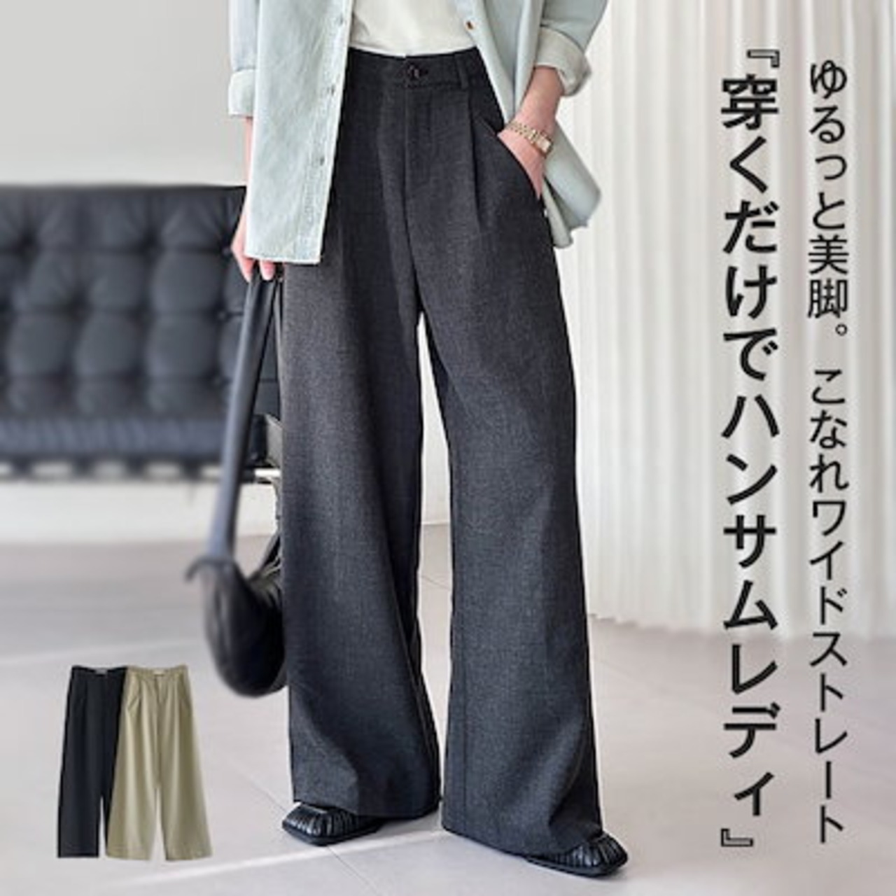 パンツ タックパンツ レディース タック ワイドパンツ ワイド ロング ゆったり きれいめ ガウチョ ボトムス ストレート ズボン ハイウエスト オフィス スラックス 長 ズボン オフィスカジュアル