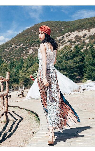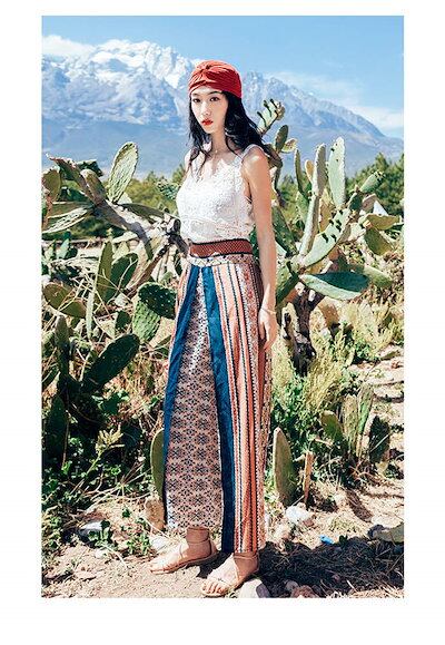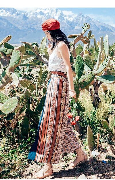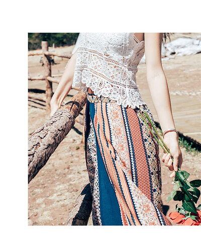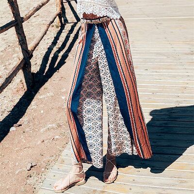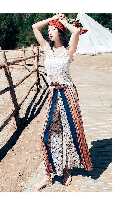 ガウチョパンツ ボヘミアン シフォン ワイドパンツ レディース エスニック ロングパンツ パンツ ガウチョ 雰囲気 脚長 ストライプ ビーチ バカンス リゾート ボトムス お出かけ ビーチ 海 海水浴