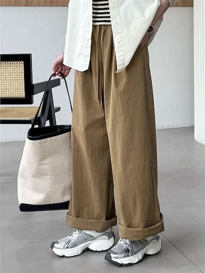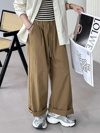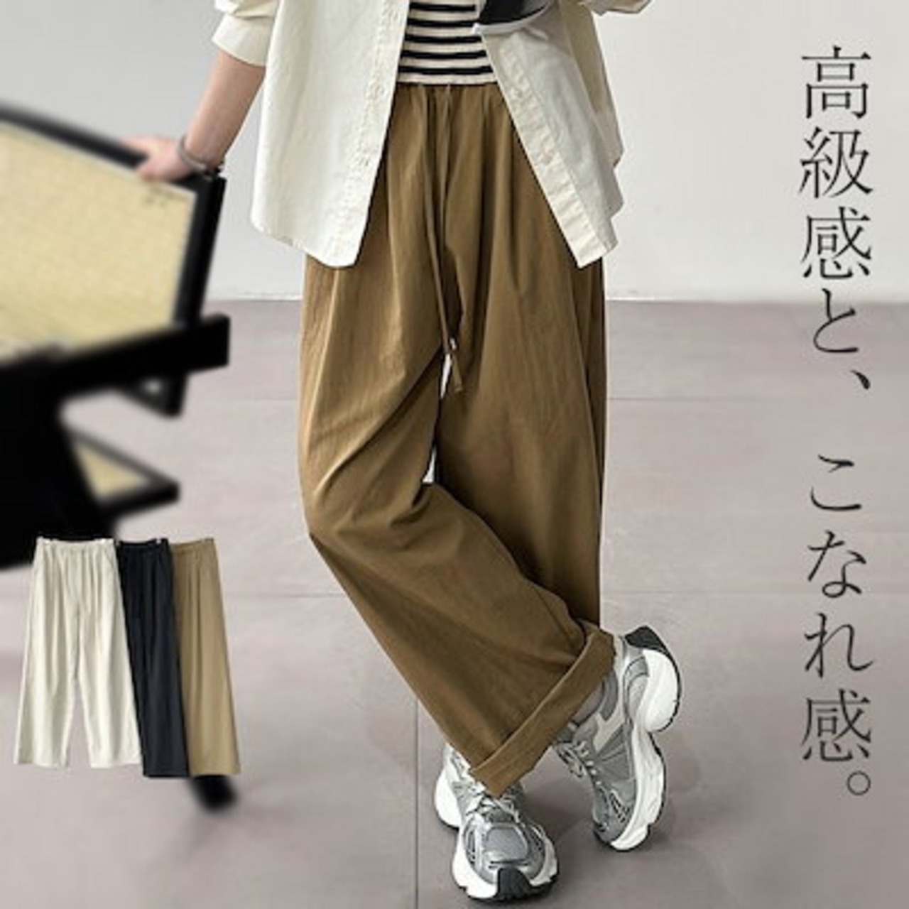 ワイドパンツ レディース タックパンツ カーゴパンツ ボトムス 春 夏 秋 無地 楽チン ロング丈 ウエストゴム ガウチョパンツ チノパンツ ワークパンツ ストレート 体型カバー ロング 楽ちん シン