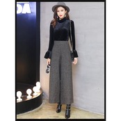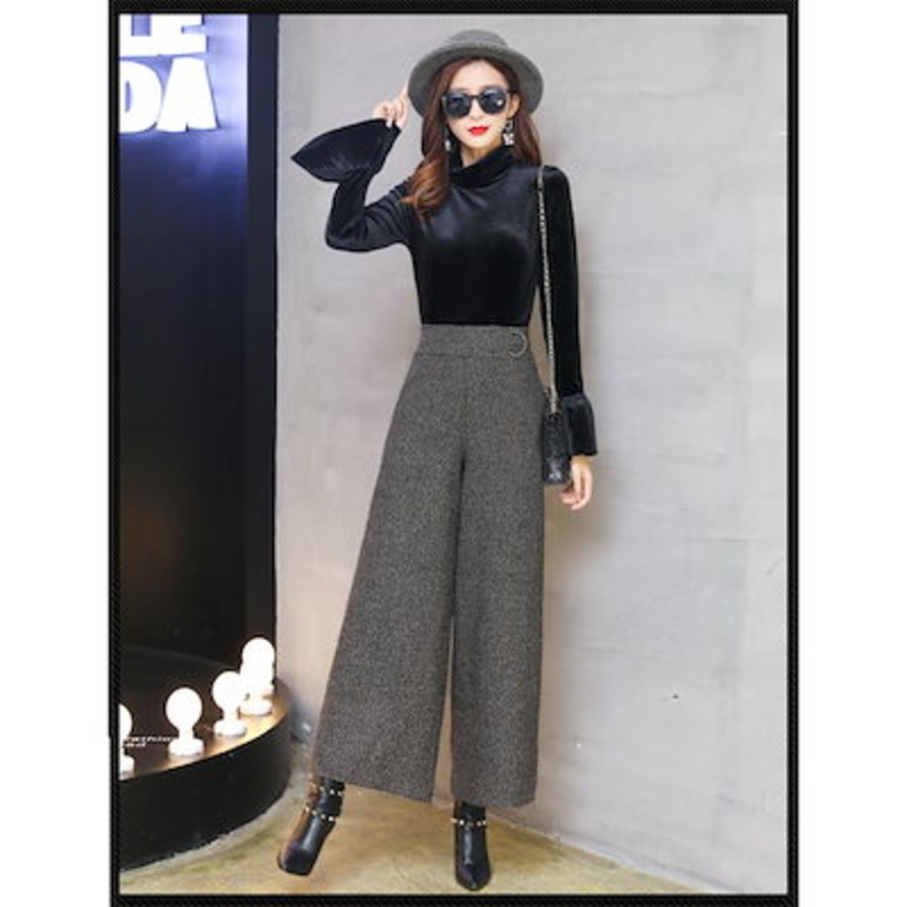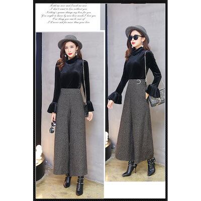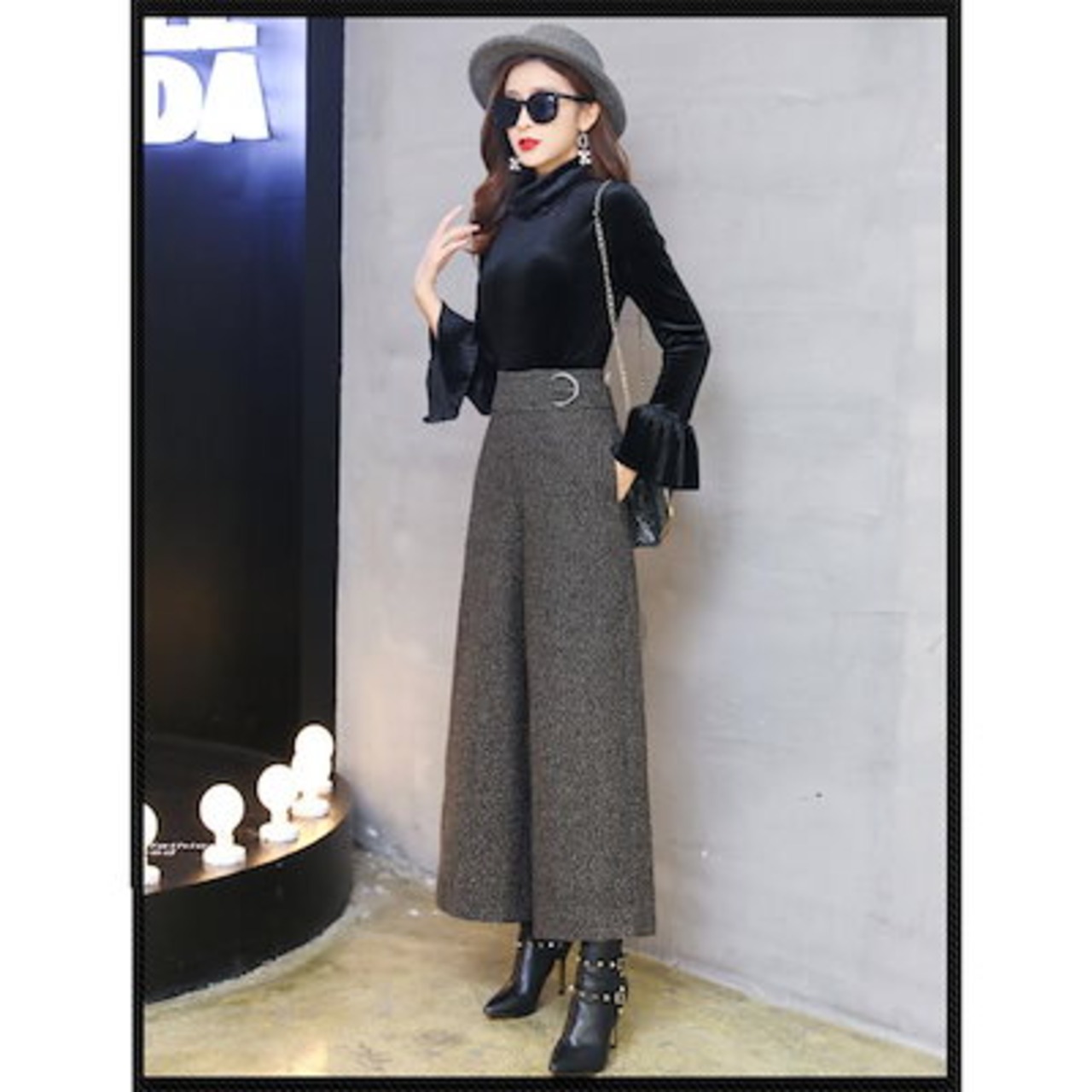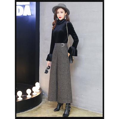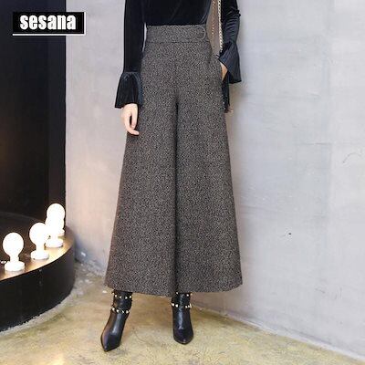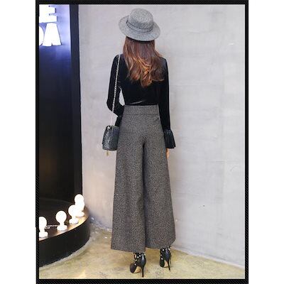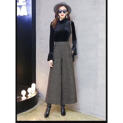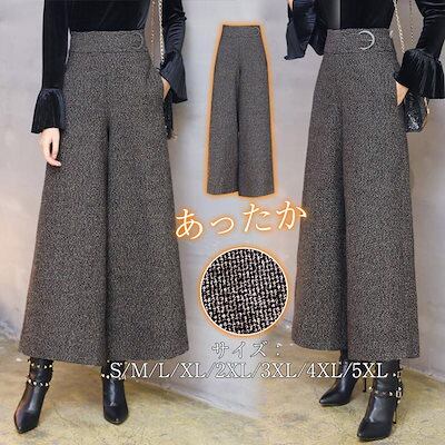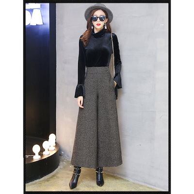 ワイドパンツ レディース ウール混 ラシャ チェック柄 ロングパンツ 秋冬 ウール混パンツ ガウチョパンツ ガウチョ パンツ ボトムス オフィス 通勤