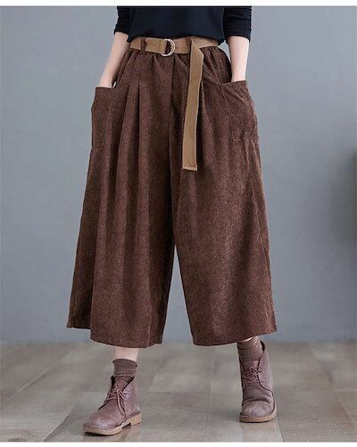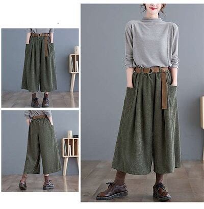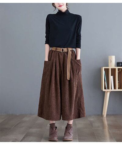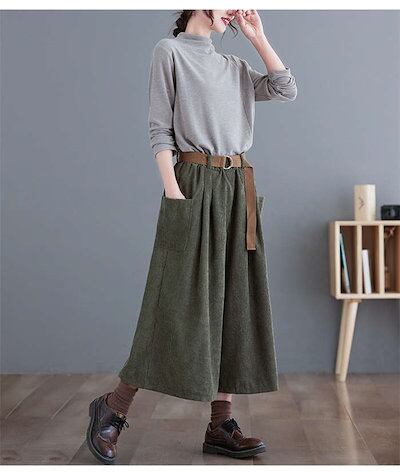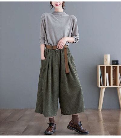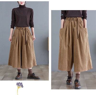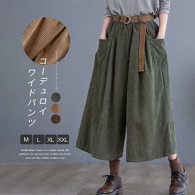 ワイドパンツ レディース コーデュロイ ガウチョパンツ 9分丈 パンツ 体型カバー コーデュロイパンツ 大きいサイズ ボトムズ 春 秋 着痩せ 美脚 ゆったり 着痩 お洒落 快適 定番 ワイドガウチョ