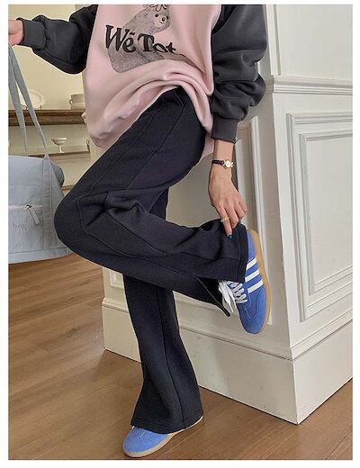 ワイドパンツ フレア 裾スリット ロング きれいめ ワイド レディース 大きいサイズ ズボン ストレートパンツ スリット ガウチョパンツ ゆったり ウエストゴム ボトムス パンツ 無地 イージーパン