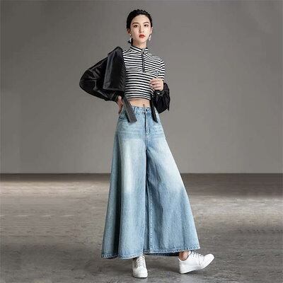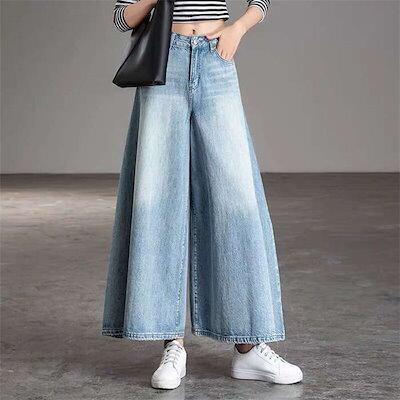 ワイドパンツ ゆったり ボトムス ストレート 春夏 ロング ジーンズ 春 レディース ガウチョパンツ 股上深め 冬 大きいサイズ 大人 美脚 秋 パンツ ハイウエスト 夏 きれいめ デニムパンツ ワイ