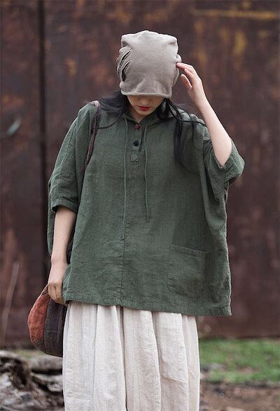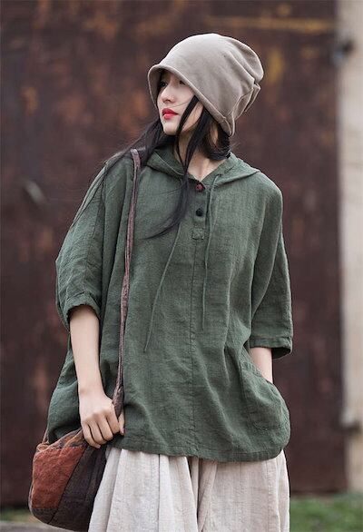 パーカー Tシャツ レディース サマーTシャツ 春夏 スウェット フードパーカー トップス 半袖パーカー 綿麻 コットンリネン プルオーバー 涼しい 無地 トレーナー 大きいサイズ ゆったり おしゃれ