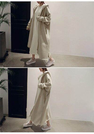 ロングパーカー ワンピース レディース 春 秋冬 秋 前開き ニット カーディガン アウター ロング ワンピース 長袖 ゆったり 暖かい カジュアル 無地 おしゃれ 上品 通学 黒 送料無料