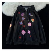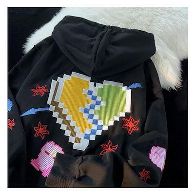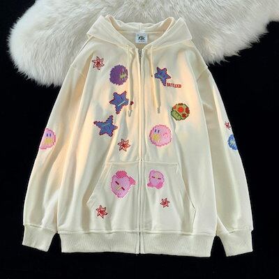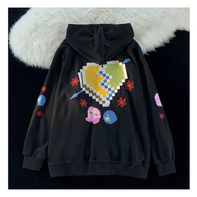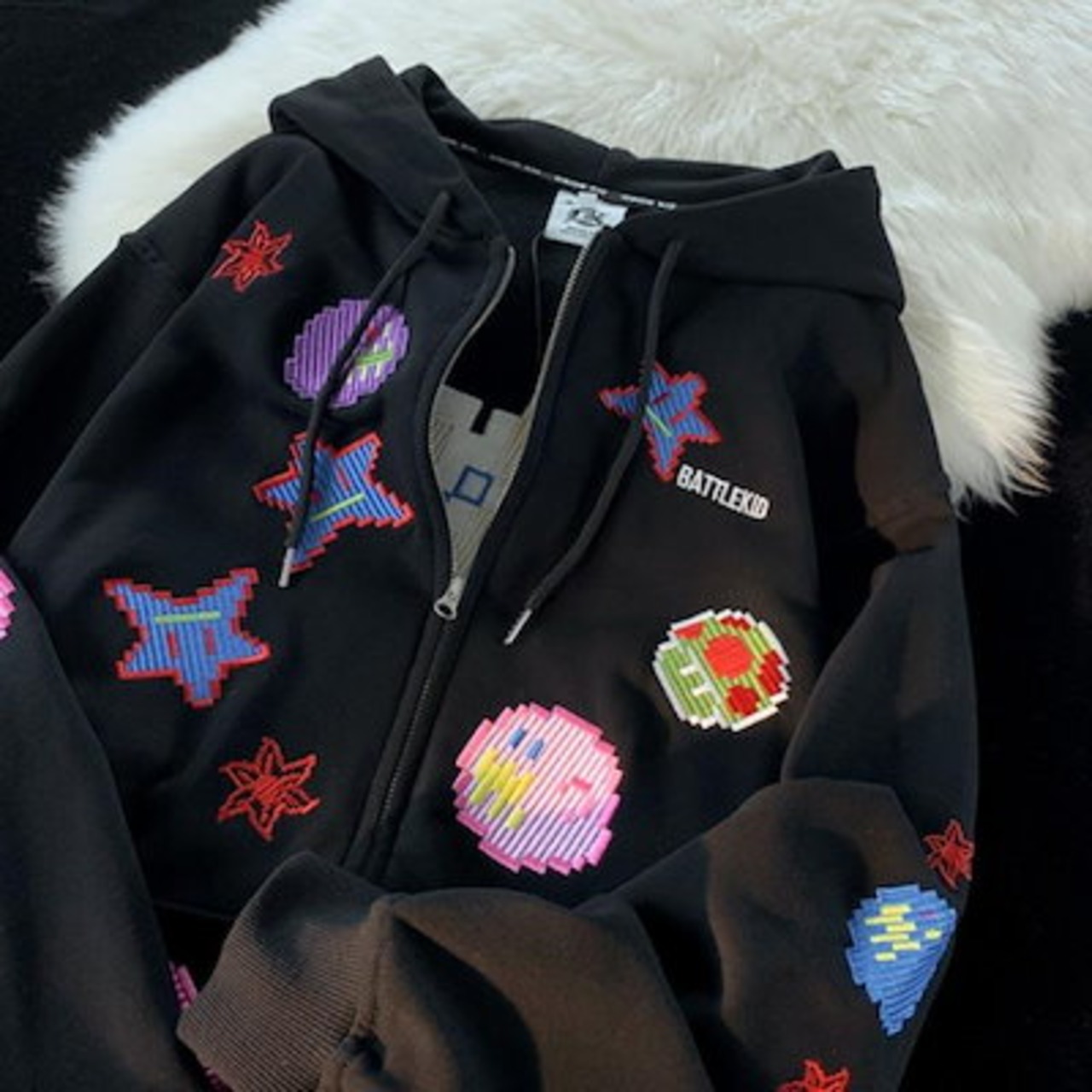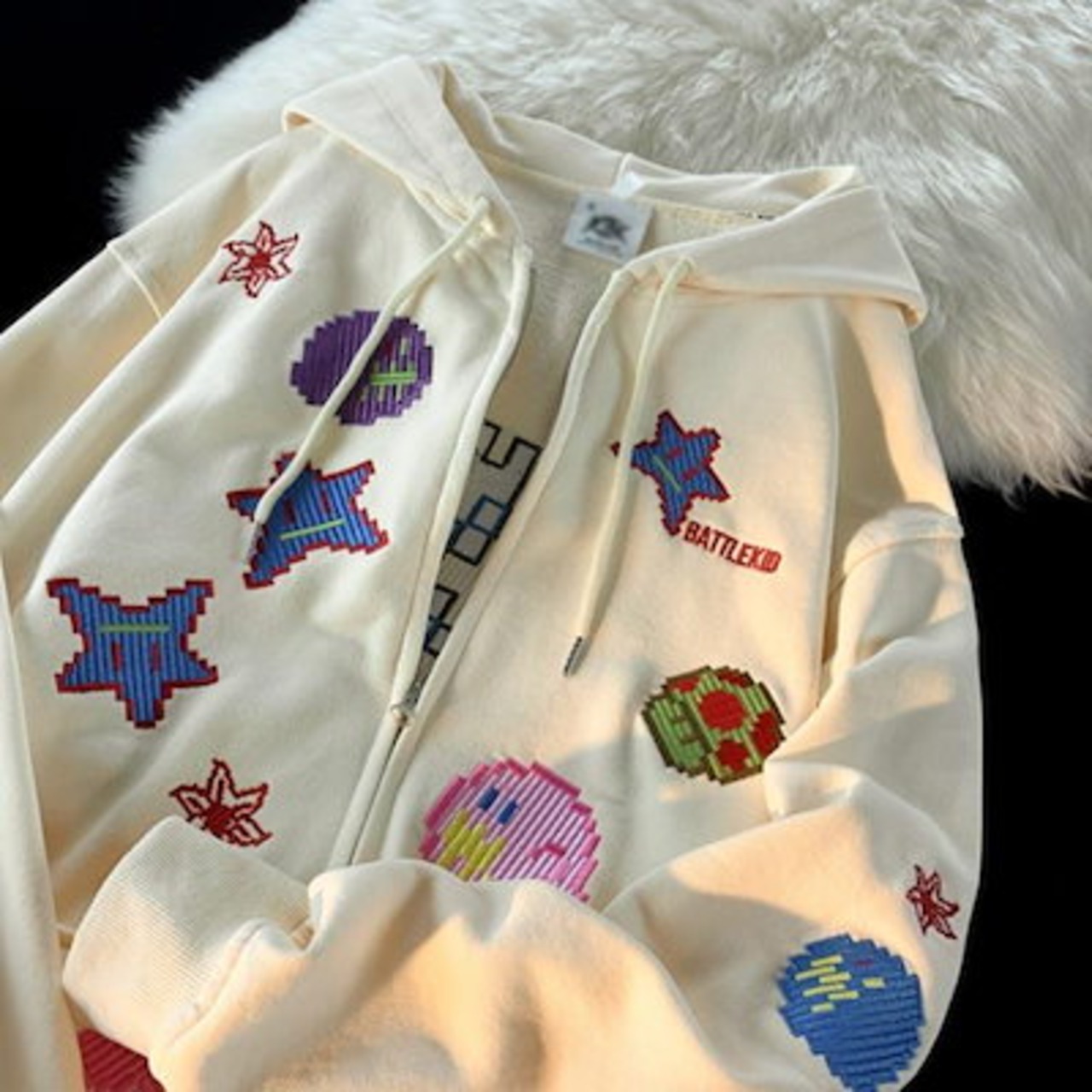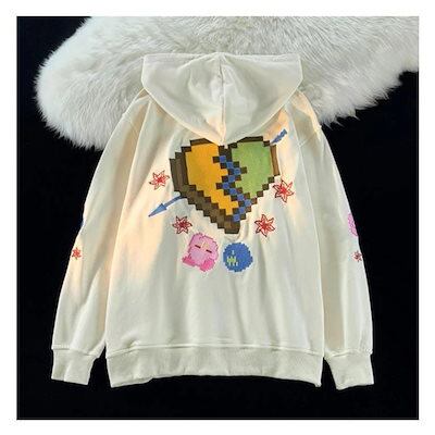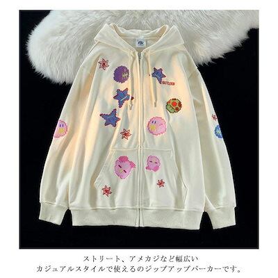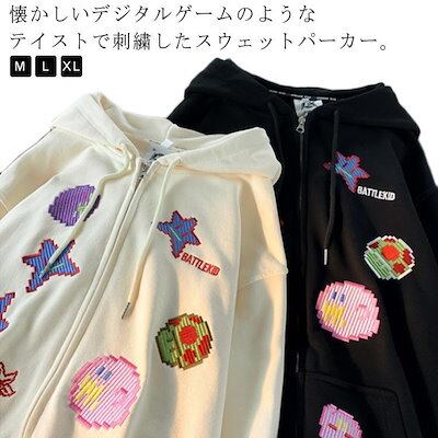 大人気 上品 フード付き ジップアップパーカー 羽織り ピクセル オーバーサイズ 裏毛 レディース 冬 刺繍 スウェットパーカー 春 秋 パーカー トッ