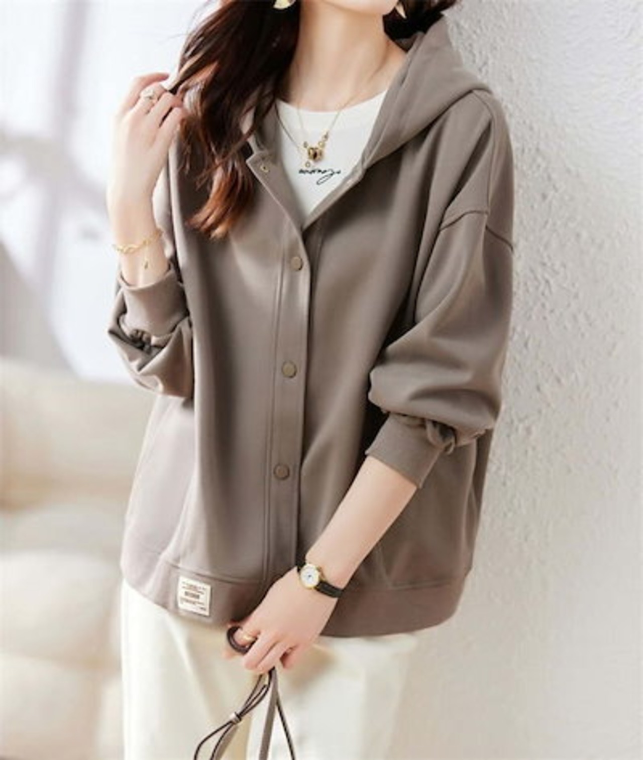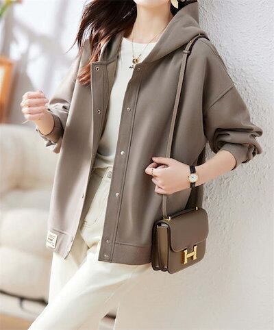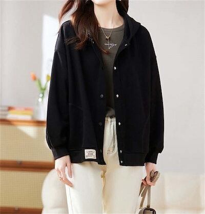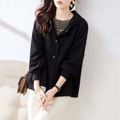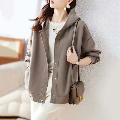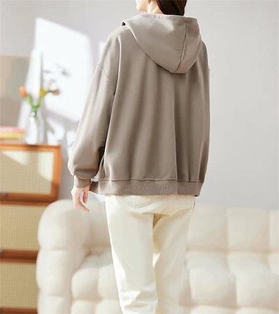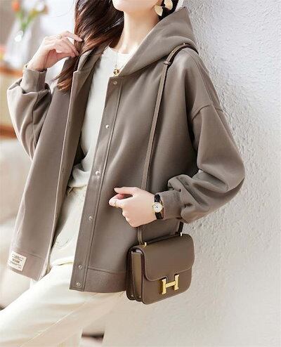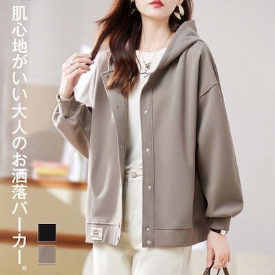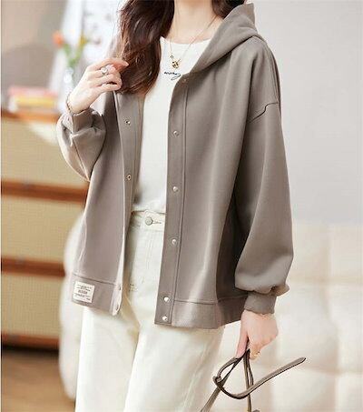 パーカー レディース ボタン スウェット トップス 長袖 裏起毛 秋 冬 春 ライトアウター ボタンパーカー ジャケット ブルゾン フード フーディ 羽織り 厚手 裏ボア 防寒 防風 保温 暖か 無地
