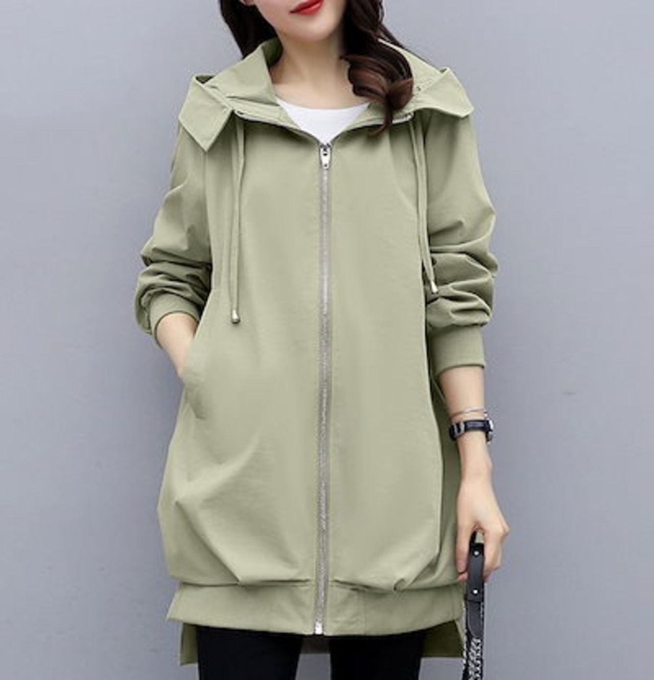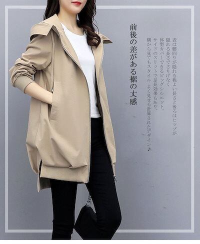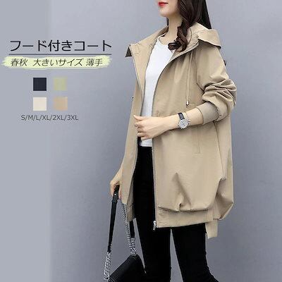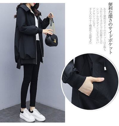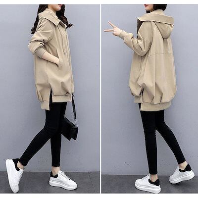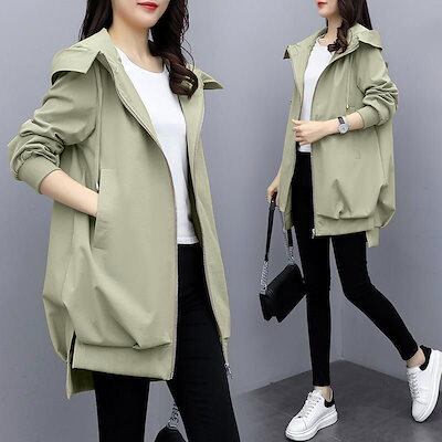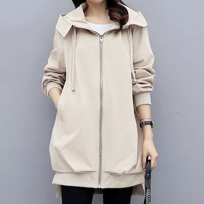 フード付きコート コート レディース 春夏 8分丈 長そで 春 アウター ブルゾン ジャンパー コーデ 秋 マウンテンパーカー 羽織り ファスナー ジップアップ 大きいサイズ 体型カバー 長め 無地