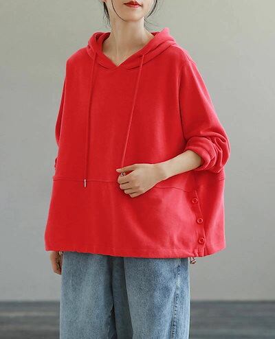 パーカー フード付き トップス レディース ブラウス 春夏 長袖 プルオーバー パーカー風 無地 アウター 羽織り フード付き プルオーバーパーカー 大きいサイズ スポーツウェア ショート丈 カジュア