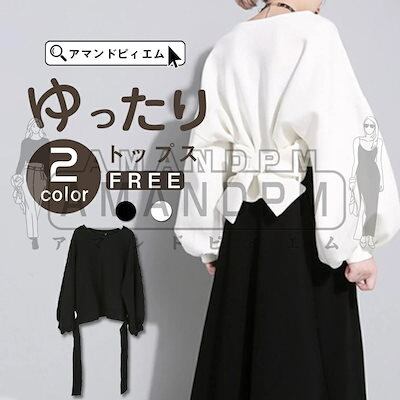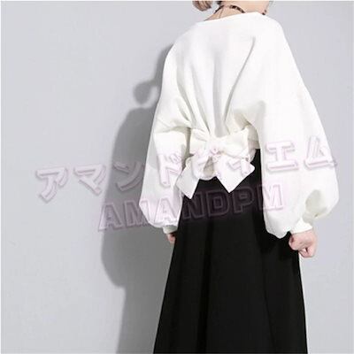 2WAY パーカー レディース ショート丈 シャツ トップス バックリボン 長袖 ちょうちん袖 春 秋 ラウンドネック 無地 大人 着せ オシャレ カジュアル 体型カバー シンプル 着回し 定番 通勤