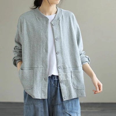 パーカー レディース アウター トップス 大きいサイズ ゆったり 秋 春 長袖 ジャケット ブルゾン 秋 長袖 カジュアル ライトコート 薄手 カーディガン スウェット ジャケット ゆったり 体型カバ