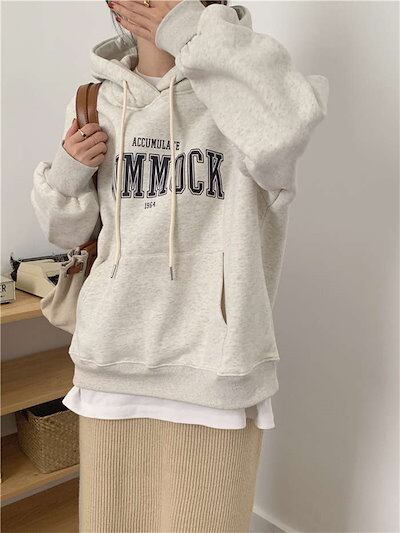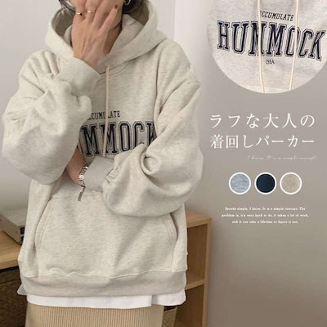 パーカー レディース 長袖 秋 春 冬 裏起毛 トレーナー フード付き パーカー ロゴ トップス 重ね着 レイヤード風 無地 シンプル ゆったり カジュアル 大きいサイズ ゆるっと ビッグシルエット