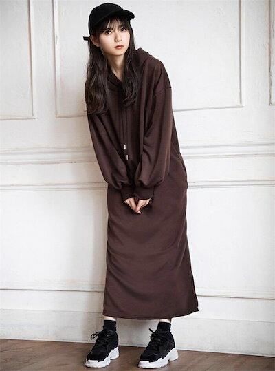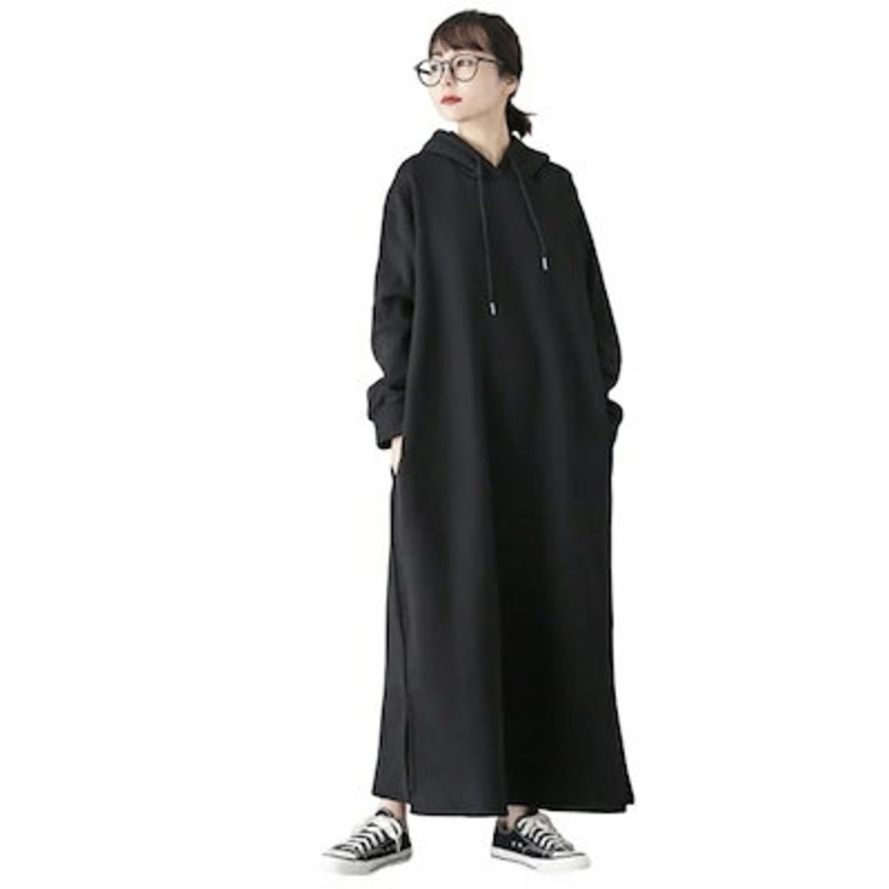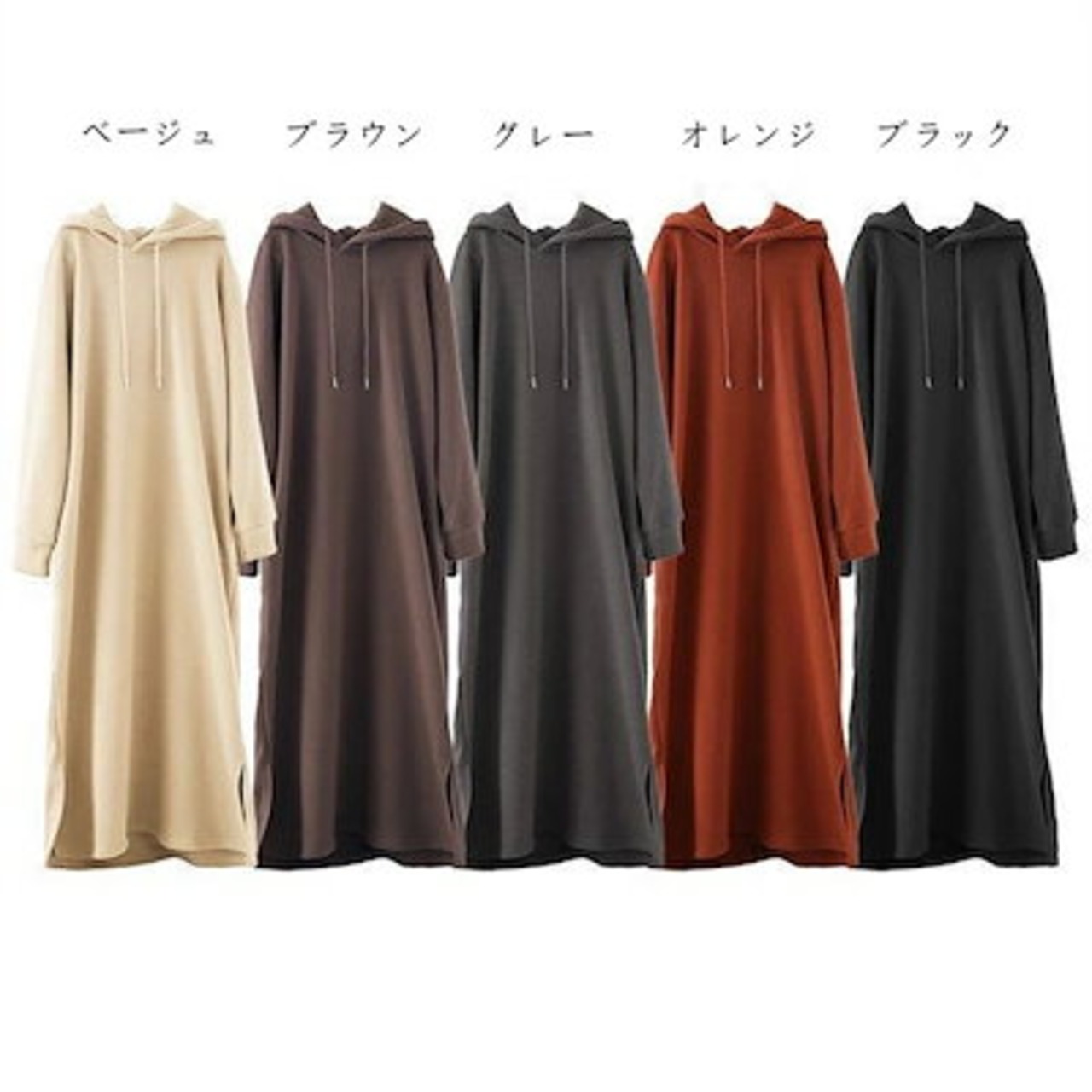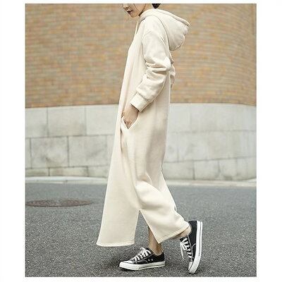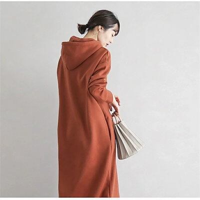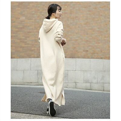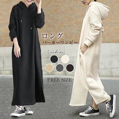 ロングパーカー ワンピース レディース 春 秋冬 秋 ニット ロング ワンピース 長袖 ゆったり 暖かい 肌に優しい カジュアル 無地 おしゃれ 上品 通学 黒 送料無料