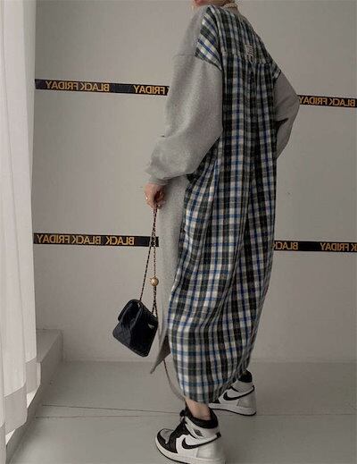 パーカーワンピース レディース 春 秋 ロングワンピース ドッキング ワンピース バイカラー スウェット ワンピース 長袖 大きいサイズ ゆったり ロング丈 切り替えワンピース 体型カバー オーバーサ