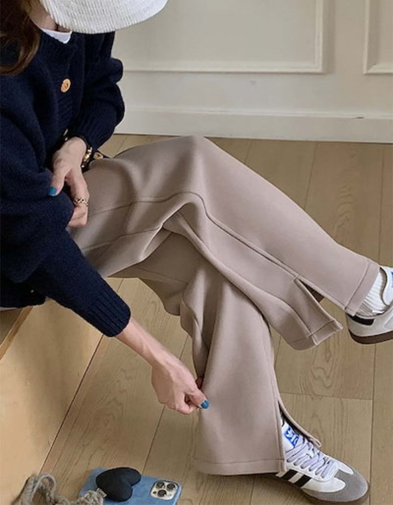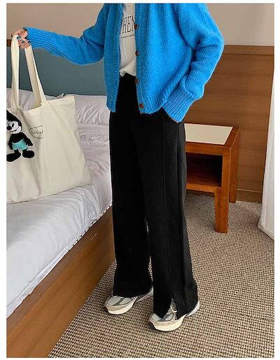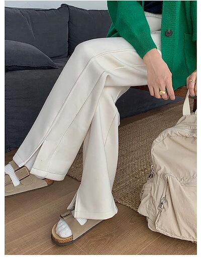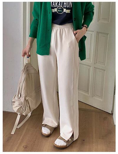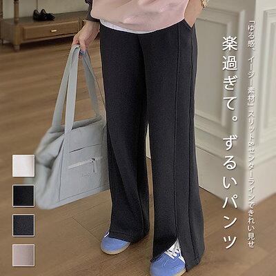 ワイドパンツ フレア 裾スリット ロング きれいめ ワイド レディース 大きいサイズ ズボン ストレートパンツ スリット ガウチョパンツ ゆったり ウエストゴム ボトムス パンツ 無地 イージーパン