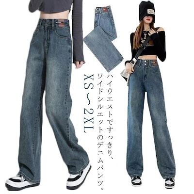 【風が】デニムパンツ レディース ボトム ワイド ストレッチ 大きいサイズ ジーンズ ジーパン パンツ 股上深め ボトムス ストレート ズボン ゆったり ハイウエスト 体型カバー 春 夏 小さいサイ