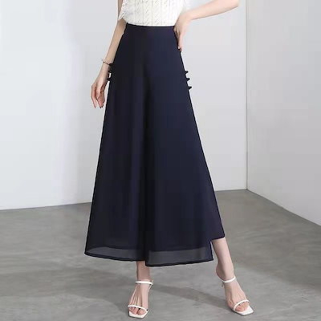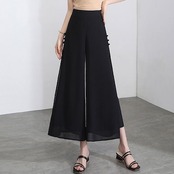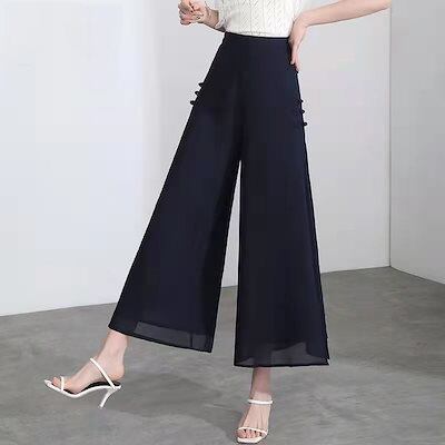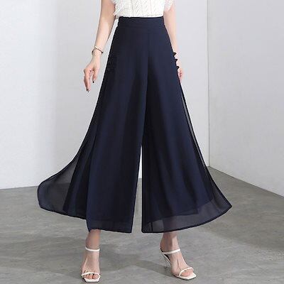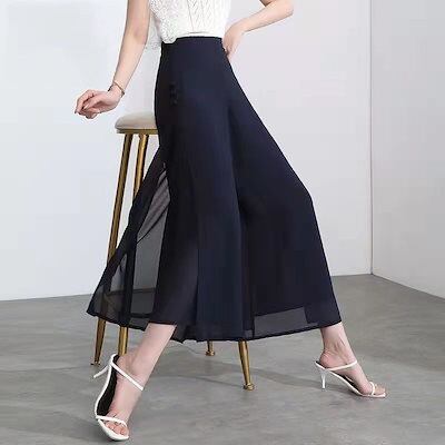 お家ヨガウェア スラックスパンツ 韓国ファッションシフォン ワイドパンツ キュロットパンツ 着痩せ 夏 大きめ ゆったりワイドパンツ レディース ロングパンツ 巾着ゴムウエスト おしゃれヨガウェア