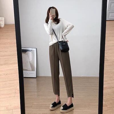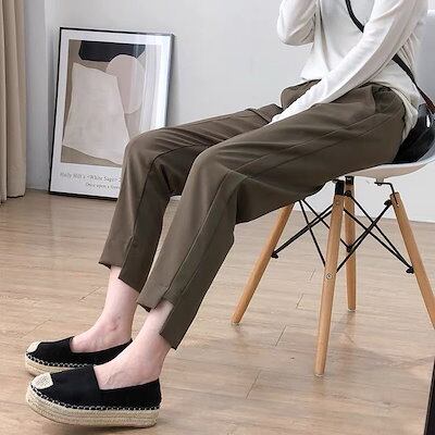 かっこいい!スラックスパンツ 韓国ファッション 薄手 ストレート スーツジ パンツ 着痩せ 夏 大きめ ゆったり ワイド パンツ レディース ロングパンツ 巾着ゴムウエスト