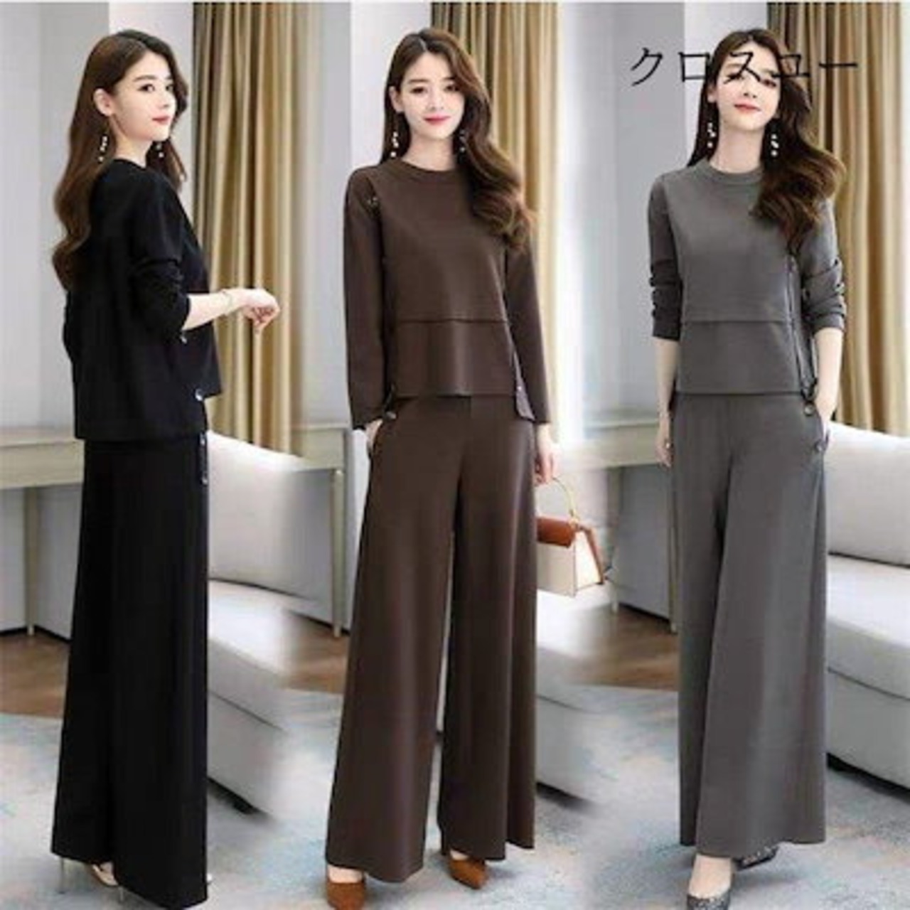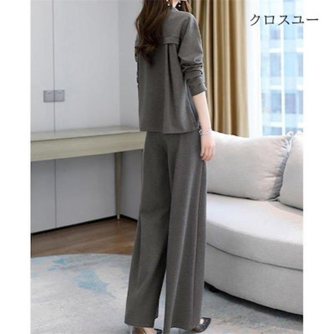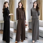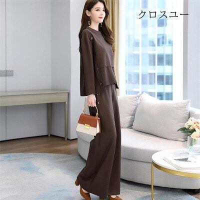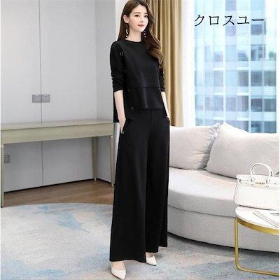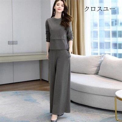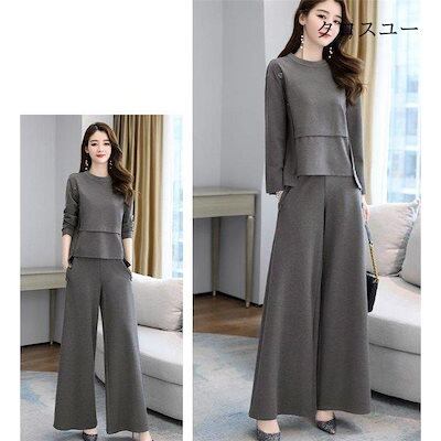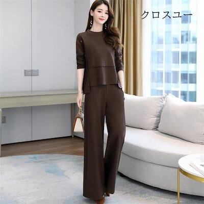 【IRC】パンツセットアップ レディース ブラウス トップス ワイドパンツ ガチョウパンツ ロング丈 2点セット ゆったり 大きいサイズ カジュアル 秋物 体型カバー 30代
