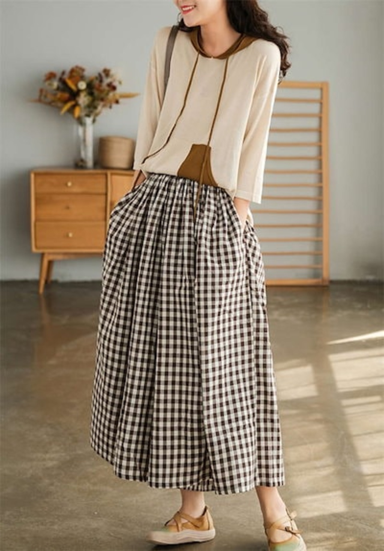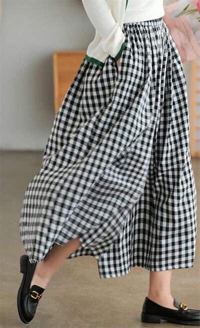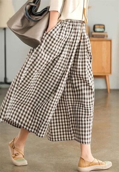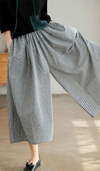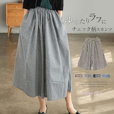 メガ割-ワイドパンツ レディース チェック柄 綿麻 ン スカンツ ロング丈 体型カバー おしゃれ ゆったり カジュアル ナチュラル 着痩せ ボトムス 物 ゆる 大きいサイズ 薄手
