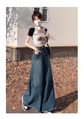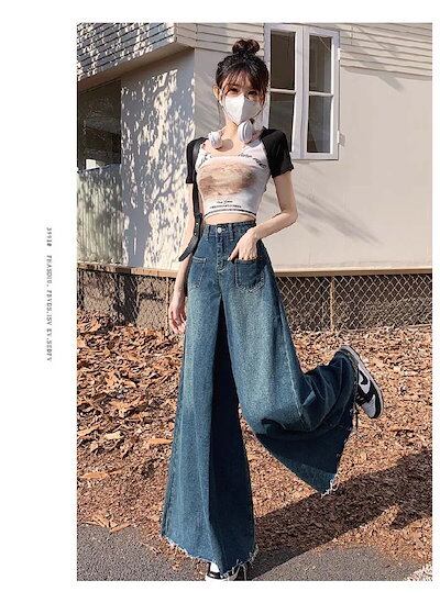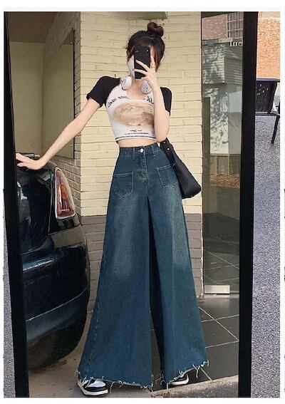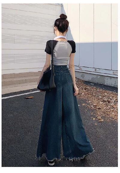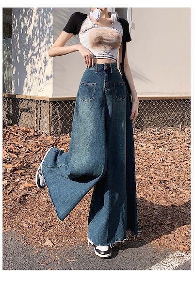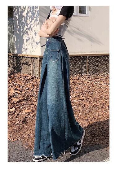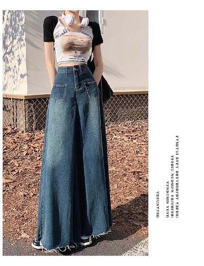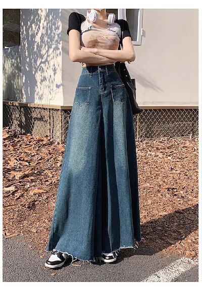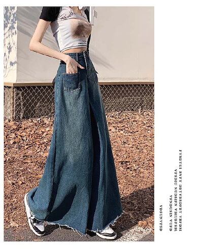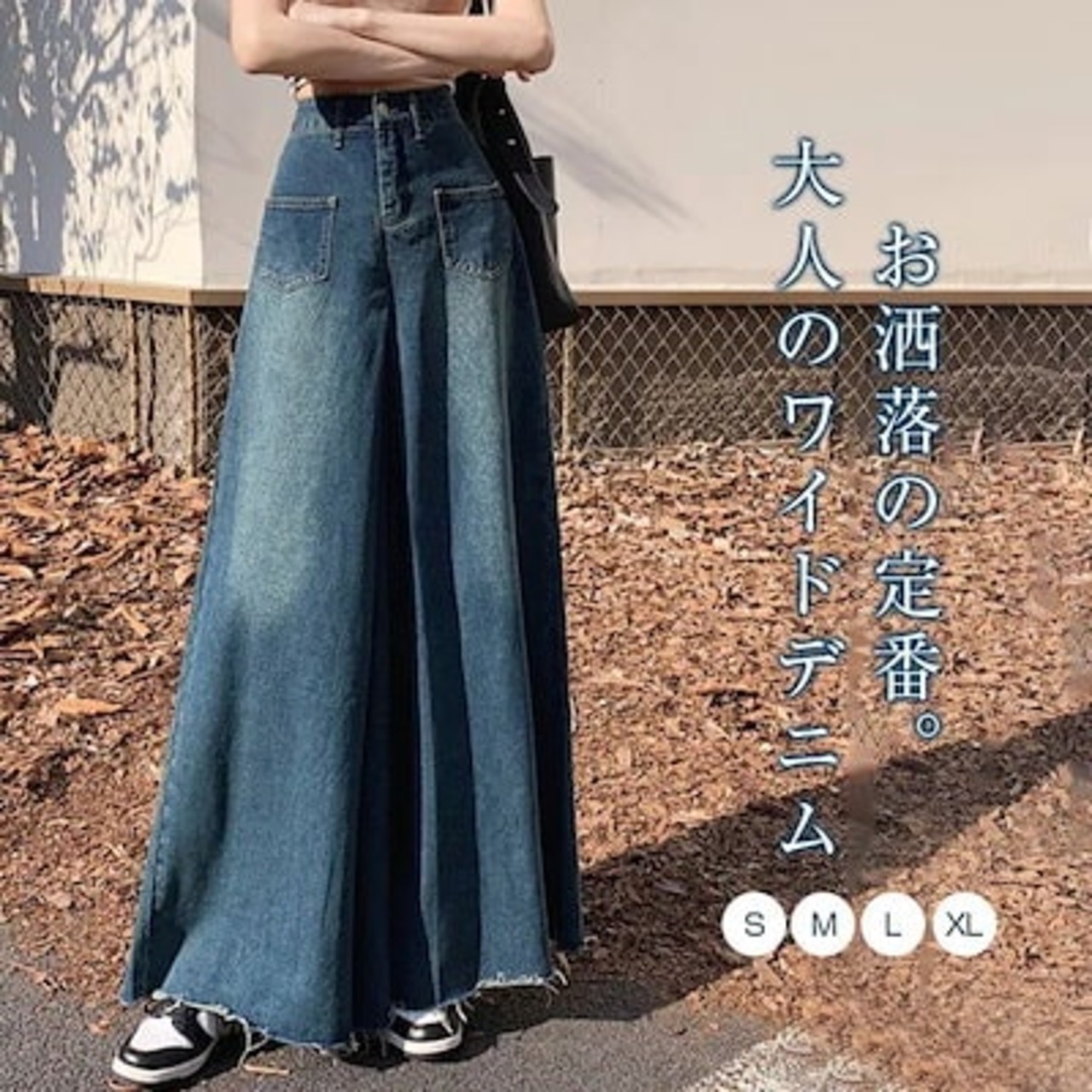メガ割-ワイドパンツ デニム レディース ガウチョパンツ ワイドデニム デニムパンツ 体型カバー ジーンズ ハイウェストデニム ロングパンツ 大きいサイズロング丈 華奢見え おしゃれ ゆったり カ