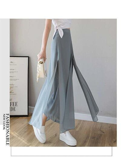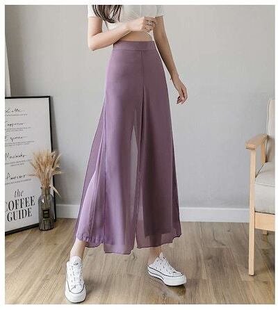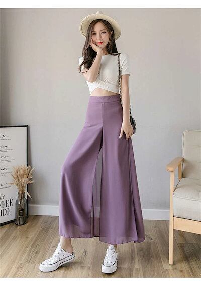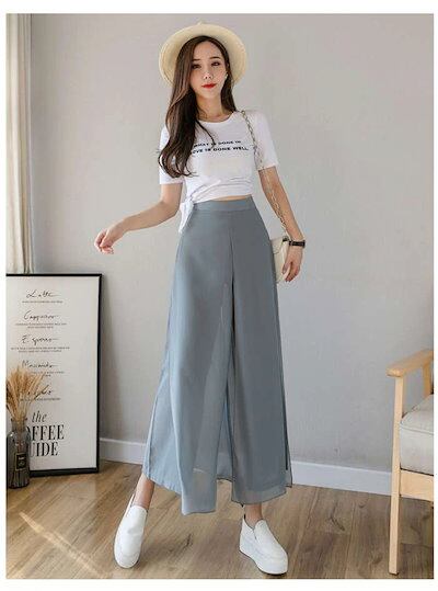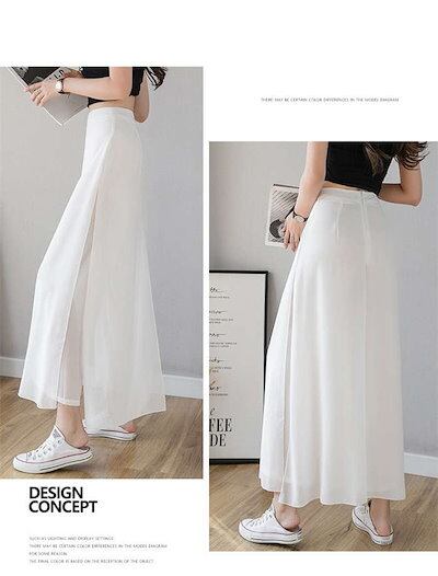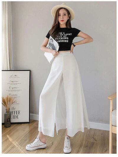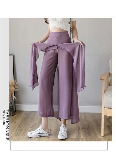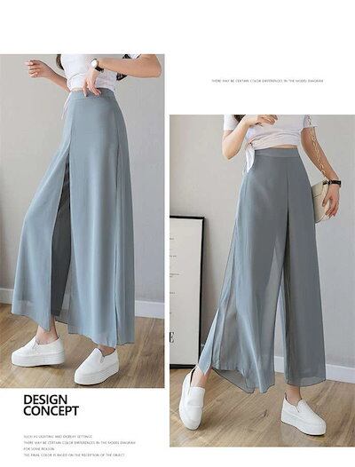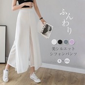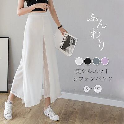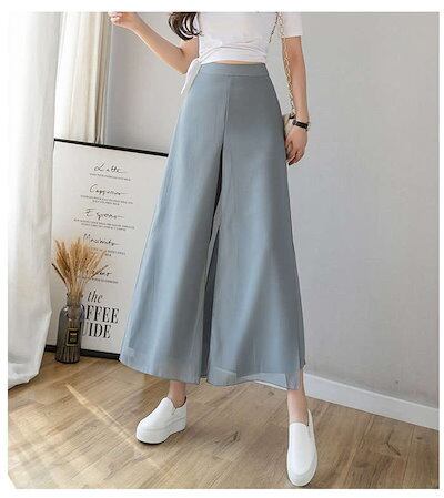 メガ割-ワイドパンツ レディース 9分丈 シフォン スカンツ ガウチョパンツ 体型カバー おしゃれ ゆったり ナチュラル カジュアル 着痩せ ボトムス 無地 ゆる 大きいサイズ 薄手 フレアパン