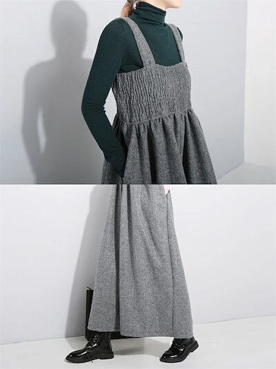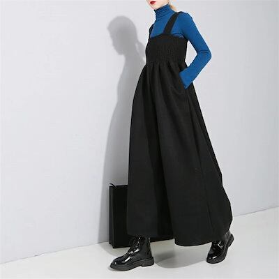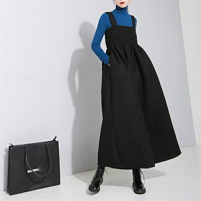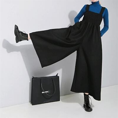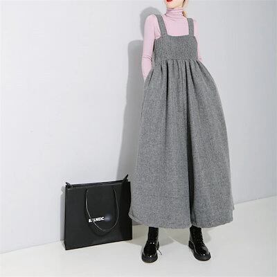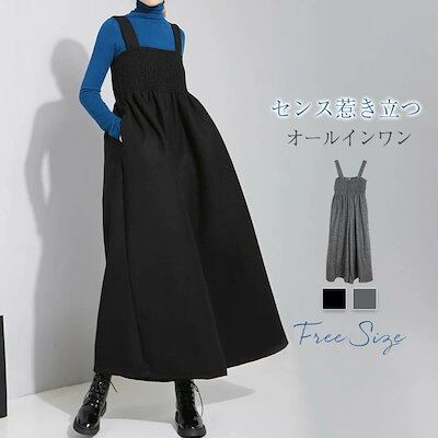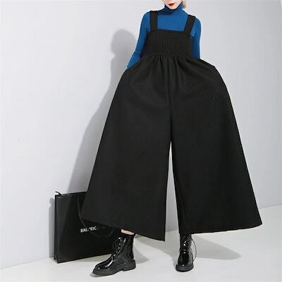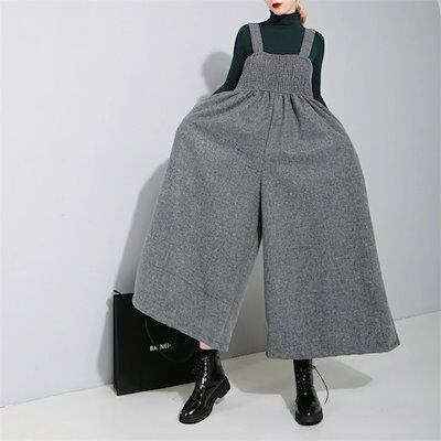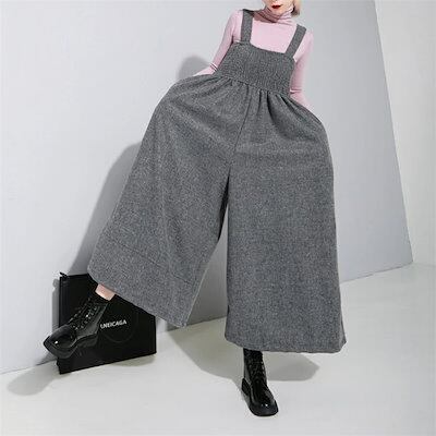 サロペット ワイドパンツ レディース ツイード オールインワン ツイードサロペット ロングパンツ 大きいサイズ パンツ オーバーオール ロング丈 おしゃれ ゆったり 厚手 暖い カジュアル 着痩せ 体