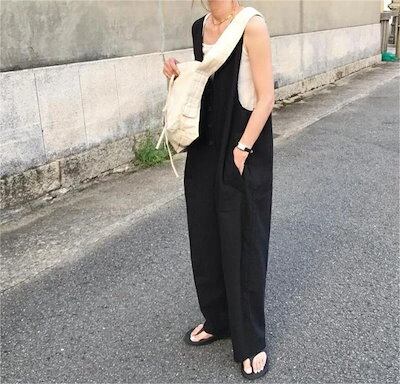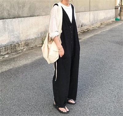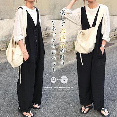 オールインワン サロペット レディース ワイドパンツ Vネック ロングパンツ 大きいサイズ ノースリーブ 無地 オーバーオール つなぎ カジュアル きれいめ シンプル ポケット ゆったり 上品 大人カ