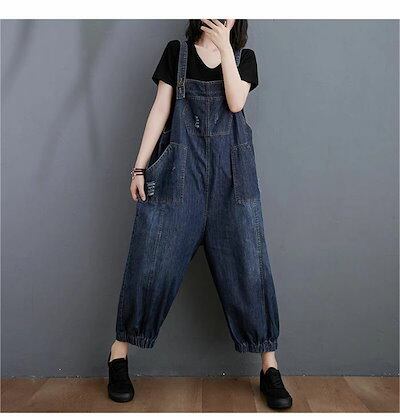 デニムサロペット オールインワン レディース デニム ワイドパンツ ズボン レディースパンツ ポケット ナチュラル 春夏秋冬 大きいサイズ ゆったり 体型カバー 着?せ 大人可愛い 森ガール カジュア