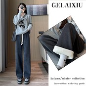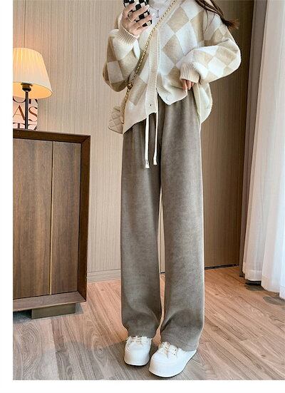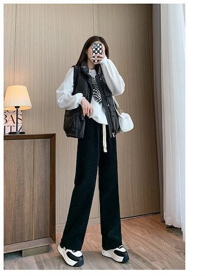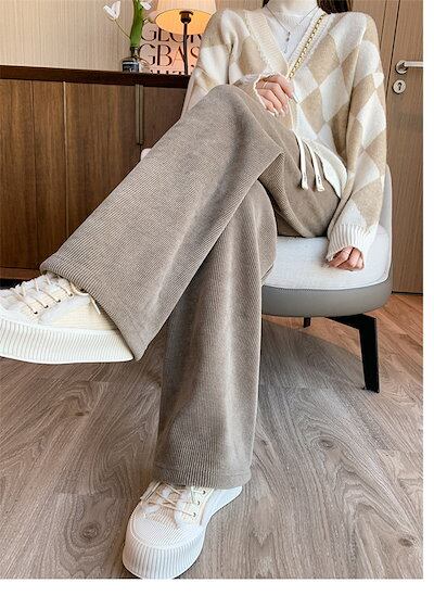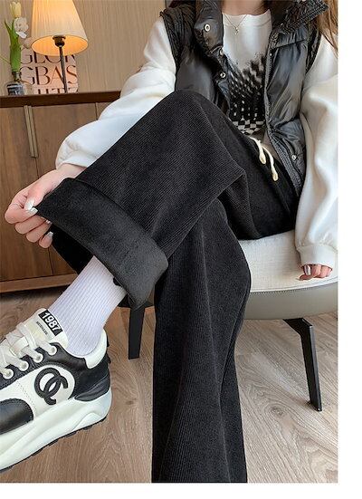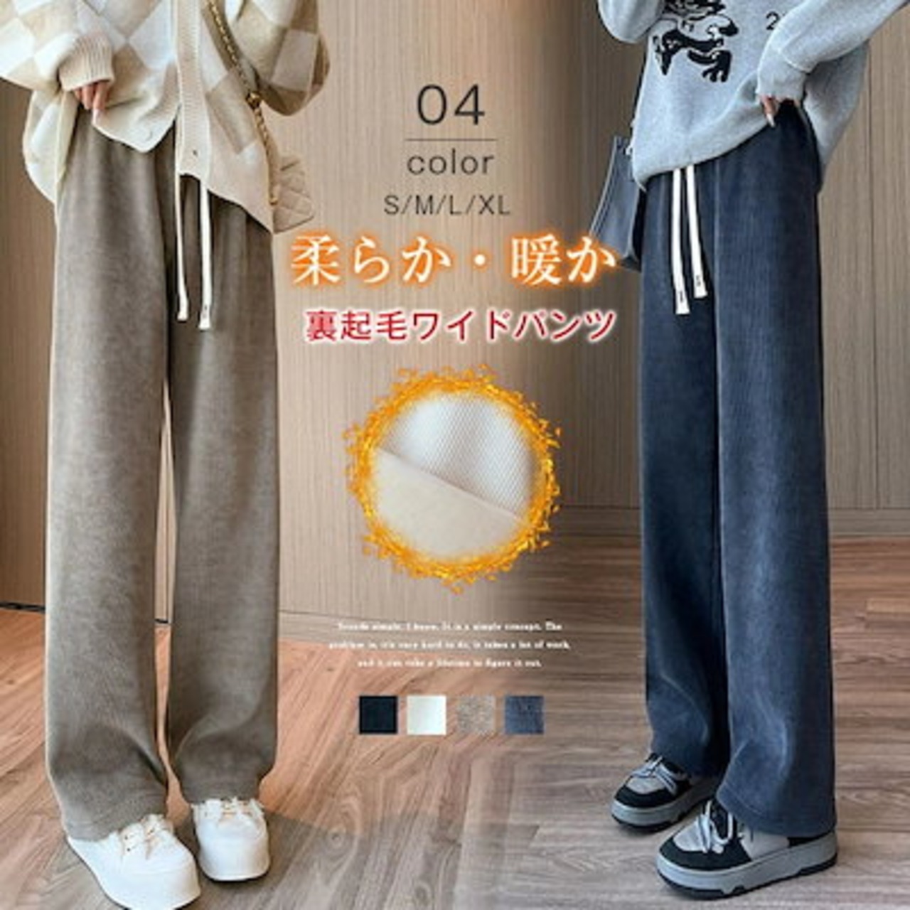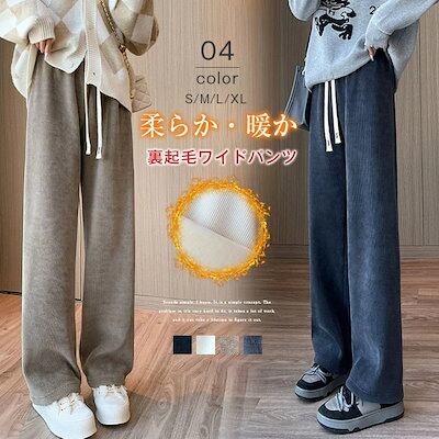 裏起毛パンツ リブパンツ ワイドパンツ 裏ボアパンツ レディース 秋 冬 コーデュロイ ロングパンツ 体型カバー ウエストゴム 大きいサイズ ゆったり ズボン ストレッチ 微起毛 ボトムス 着?せ 厚