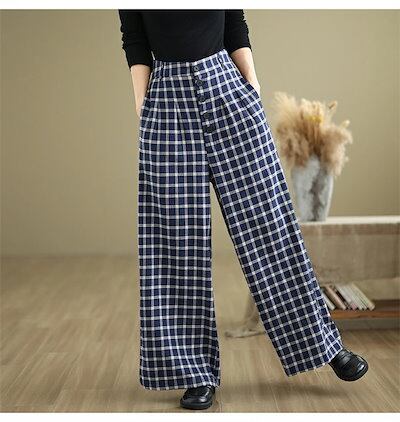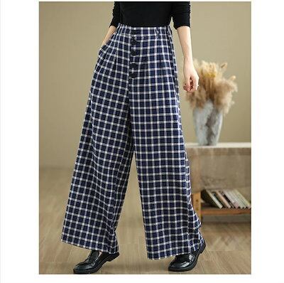 ワイドパンツ レディース きれいめ チェック パンツ 秋 ワイドパンツ レディース パンツ チェック柄 ロングパンツ 大きいサイズ ゆったり 体型カバー リラックス 着心地よい 柔らか ファッション