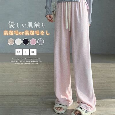 ワイドパンツ レディース 秋冬 きれいめ 裏起毛 ワイドパンツ レディース 大きいサイズ ゆったり フレアパンツ イージーパンツ ウエストゴム ズボン ボトムス 体型カバー 着?せ 暖か もこもこ オ