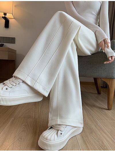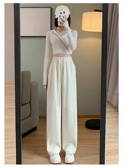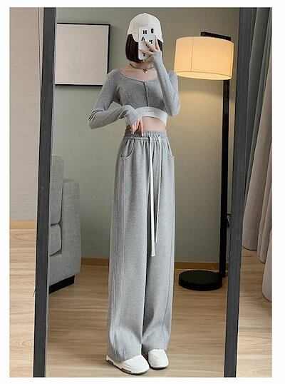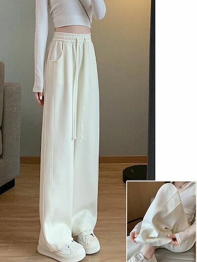 ワイドパンツ レディース ストレートパンツ 斜めリブ 無地 ウエストゴム イージーパンツ スウェットパンツ ゆったり ズボン 体型カバー 大きいサイズ ボトムス 着?せ オシャレ カジュアル シンプル