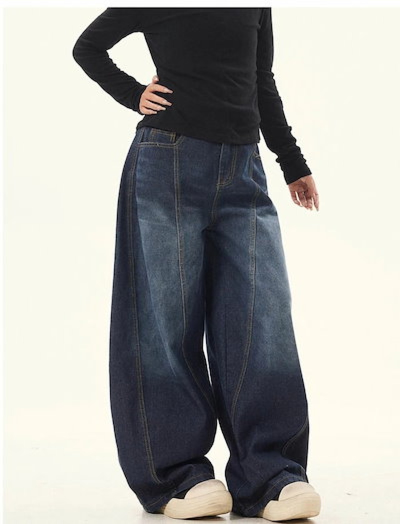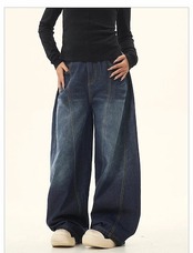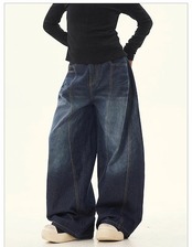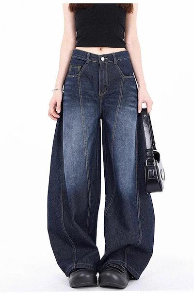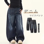 デニムワイドパンツ レディース デニムパンツ カーブパンツ 秋冬 パンツ ジーパン ボトムス ワイドルーズ ロング丈 長ズボン カーブデニム ジーンズ 大きいサイズ ゆったり 体型カバー 大人 カジュ