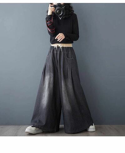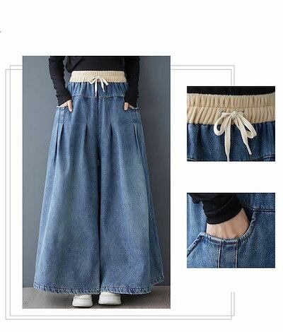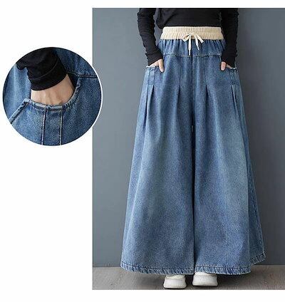 ワイドパンツ デニム デニムパンツ レディース パンツ レディース ボトムス ズボン 長ズボン ロングパンツ ロング丈 ウエストゴム 大きいサイズ ゆったり ワイドデニム ジーンズ おしゃれ 春 秋