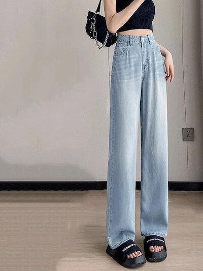 デニムワイドパンツ レディース デニムパンツ ストレートパンツ 薄手 ワイド デニム パンツ 接触冷感 涼しい ボトムス ロングパンツ ジーンズ 大きいサイズ ゆったり 体型カバー 大人 楽ちん 柔ら