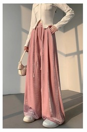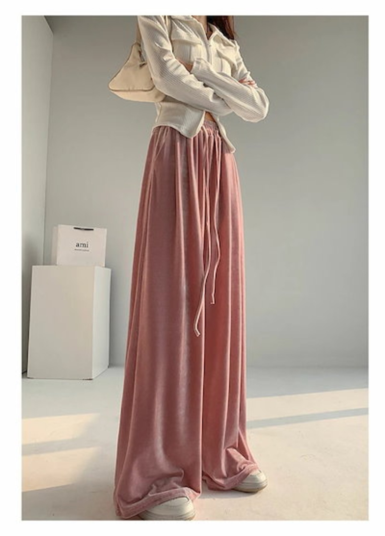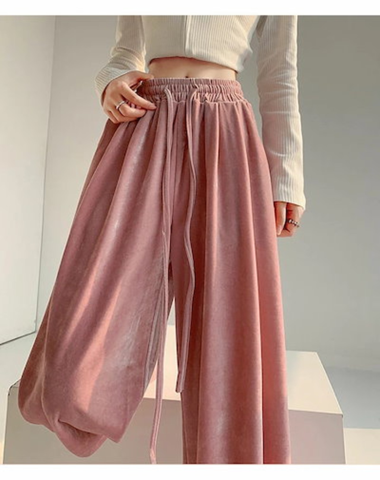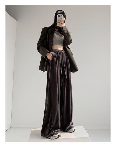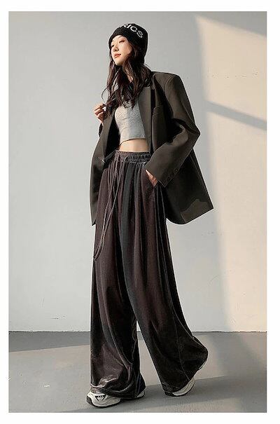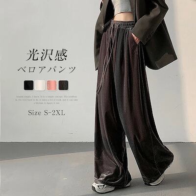 ベロアパンツ レディース ワイドパンツ 春秋 ワイド パンツ 落ち感 光沢感 ロングパンツ ウエストゴム 無地 大きいサイズ ゆったり リラックス 着心地よい カジュアル オシャレ シンプル ファッシ