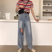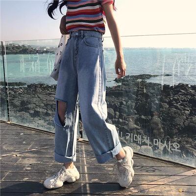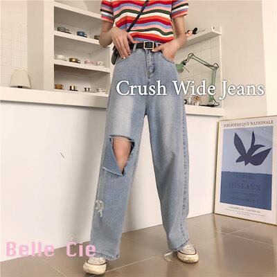デニムワイドパンツ クラッシュ ジーンズ ダメージ レディース 大きいサイズ ズボン Gパン