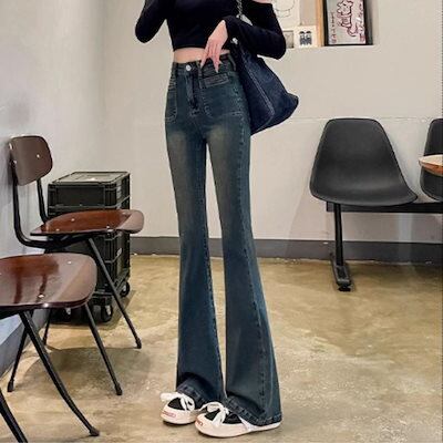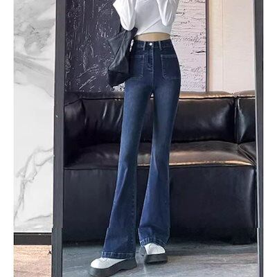 デニムパンツ レディース フレアパンツ ワイド 韓国ファッション ストレッチ ジーンズ ハイウエスト 大きいサイズ