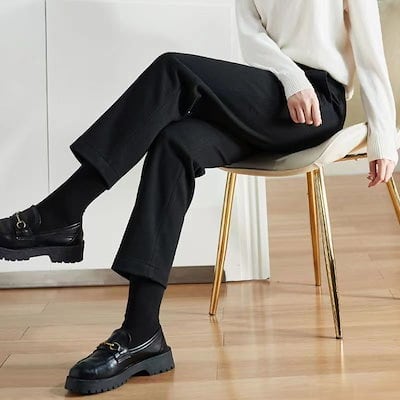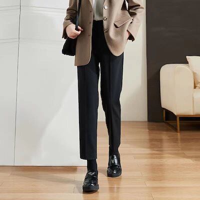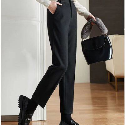 快適な ワイドパンツ 秋冬 ゆったりカジュアルハレンレディース ブラック 厚手 体型カバー ファッション OL 通勤 ウール ラシャスーツパンツ 大きいサイズ ストレートパンツ