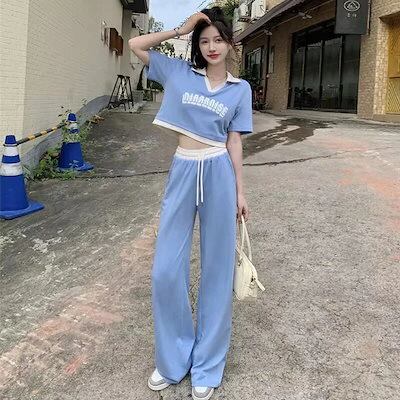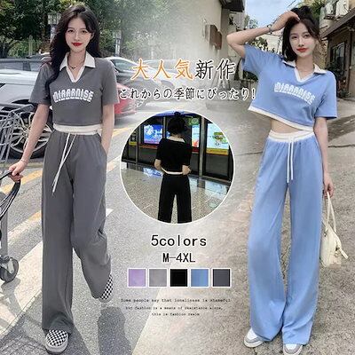 2024 楽ちんセットアップ 新作 可愛い 二点セット シンプル ワイドパンツ Tシャツ セット カジュアル 大きめサイズ 日焼け止め レディース