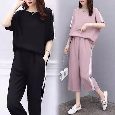 2024 楽ちんセットアップ 春夏秋 新作 二点セット 大きいサイズ ゆったり カジュアル 半袖 Tシャツ ワイドパンツ 春夏秋 ルームウェア 日焼け止め レディース