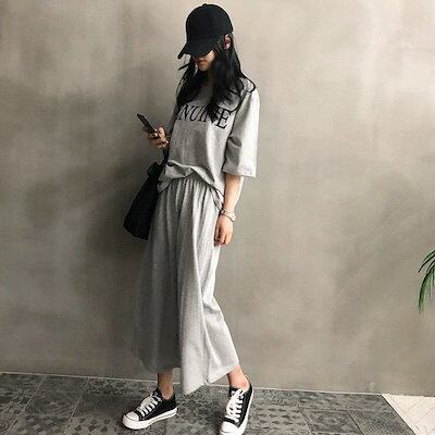 2024 楽ちんセットアップ シンプル 大きめサイズ パジャマ ルームウェア 半袖 Tシャツ ワイドパンツ 二点セット 春夏秋 部屋着 レディース