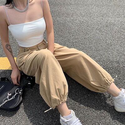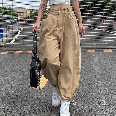 秋 流行り カジュアル カーゴパンツ レディース 調節可能ドローストリングドローストリングパンツ ゆったり 大きいサイズ 着痩せ美脚ワイドパンツ 着痩せ 百掛け ボトムス