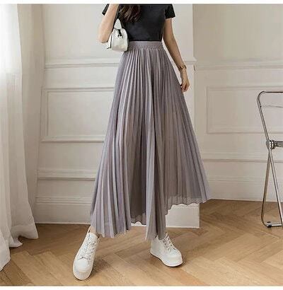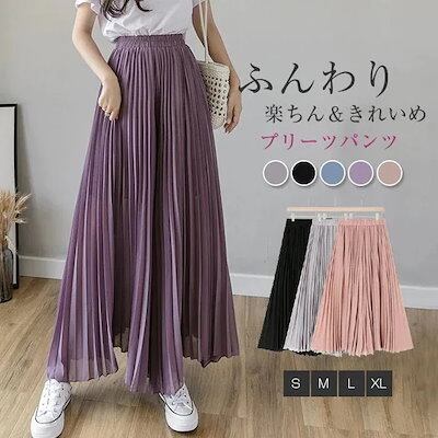 2024新作 プリーツパンツ ワイドパンツ リラックスパンツ 無地 フレアパンツ シフォン ガウチョ スカーチョ プリーツ パンツ レディース きれいめ 可愛い 大きいサイズ 体型カバー おしゃれ