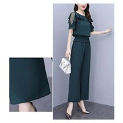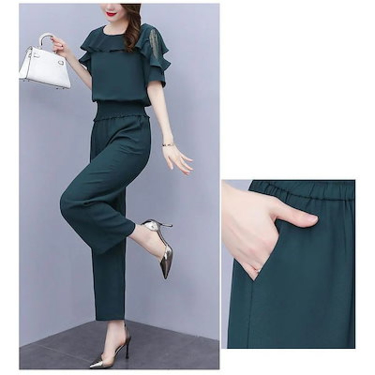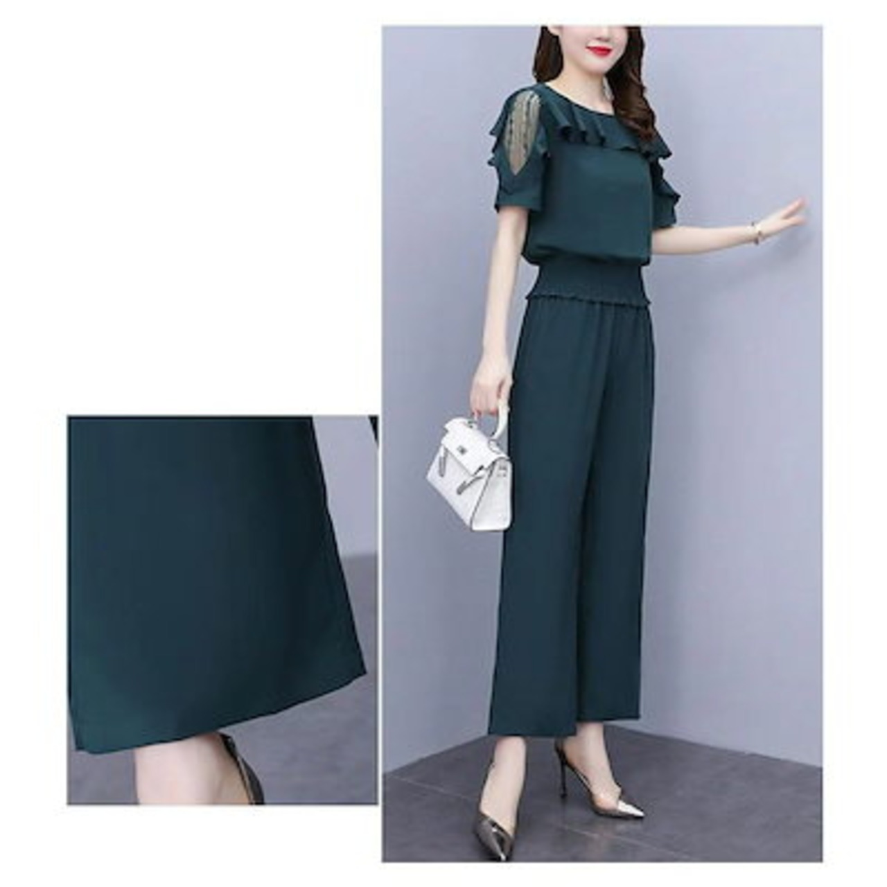 セットアップ レディース 40代 半袖 通勤 レース ワイドパンツ カジュアル オシャレ 韓国風 着痩せ 大きいサイズ