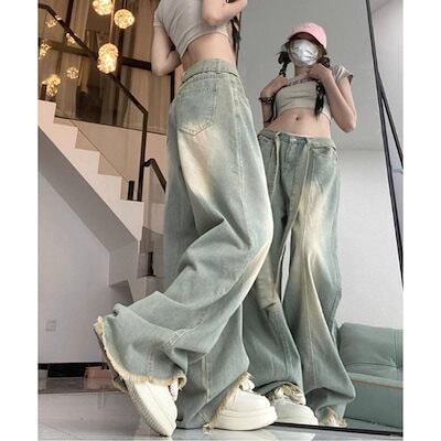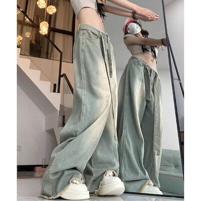デニムパンツ デニムパンツ ワイド バギー ロング ゆったり サンド 太め レディース 韓国ファッション 大きいサイズ ストリート ヒップホップ 体型カバー 衣装