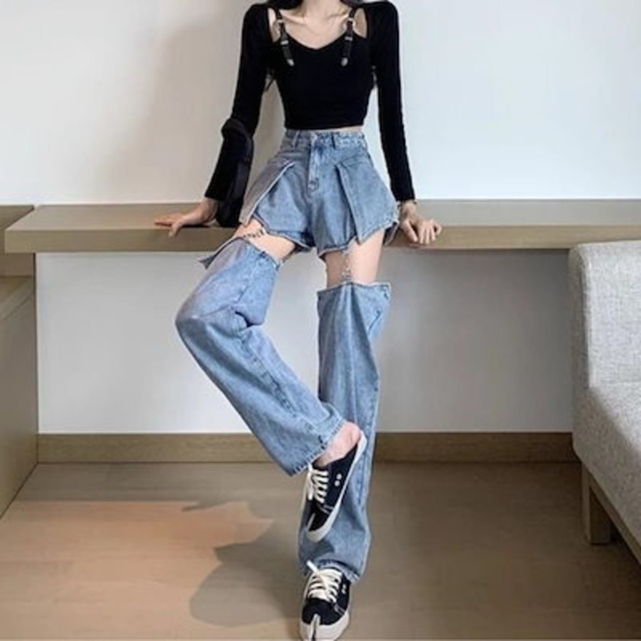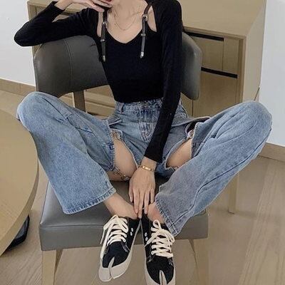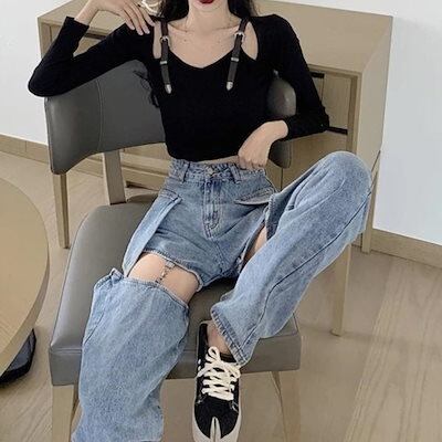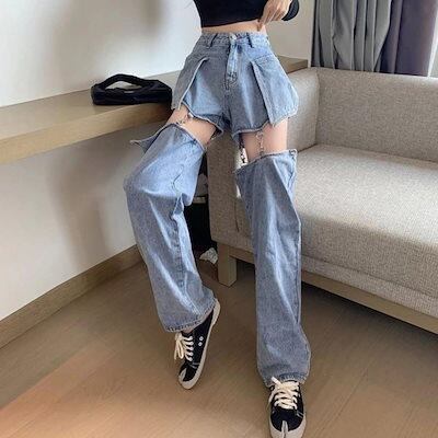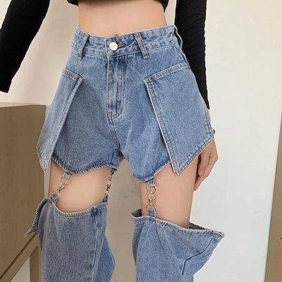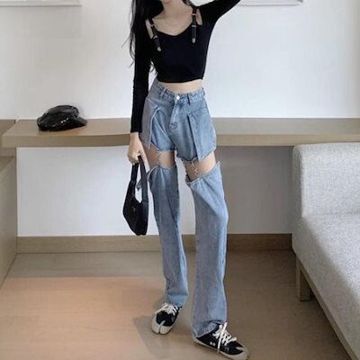 デニムパンツ ロングパンツ デニムパンツ ショートパンツ カーゴ ワイド バギー レディース 韓国ファッション ストリート 大きいサイズ ゆったり セパレート 夏