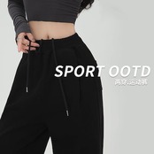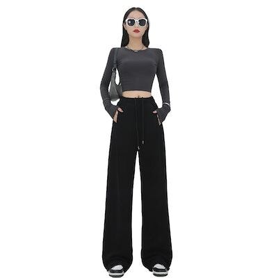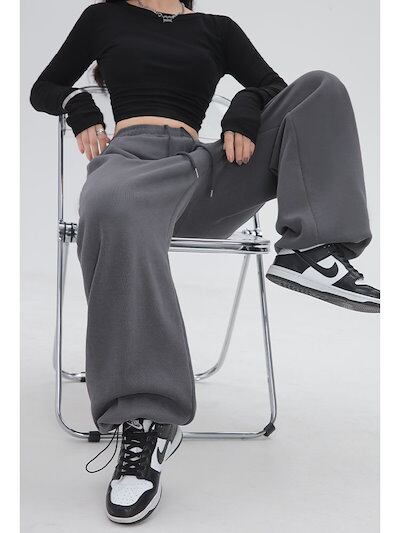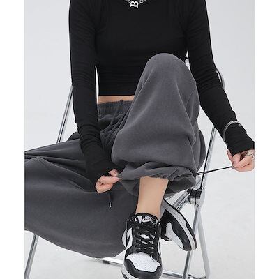 アメリカングレーのスウェットパンツ レディース春秋2024新作ドローストリングスウェットパンツ ゆったり大きめカジュアル小さめワイドパンツ