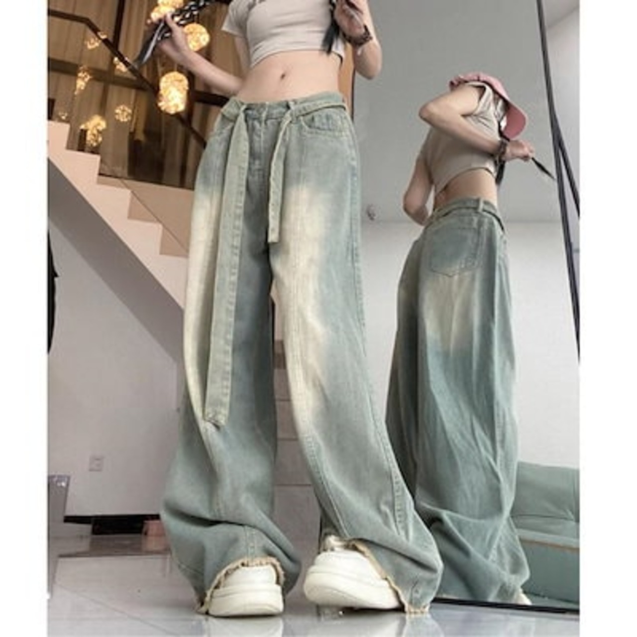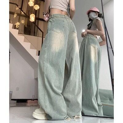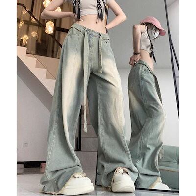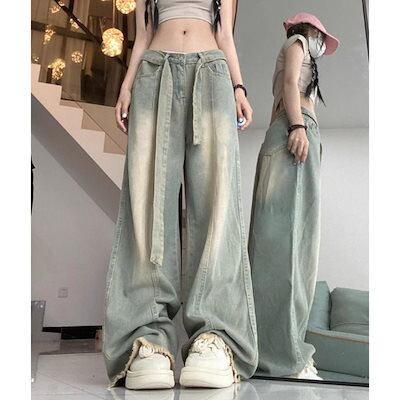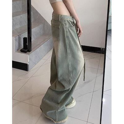 デニムパンツ ワイド バギー ロング ゆったり サンド 太め レディース 韓国ファッション 大きいサイズ ストリート ヒップホップ 体型カバー 衣装